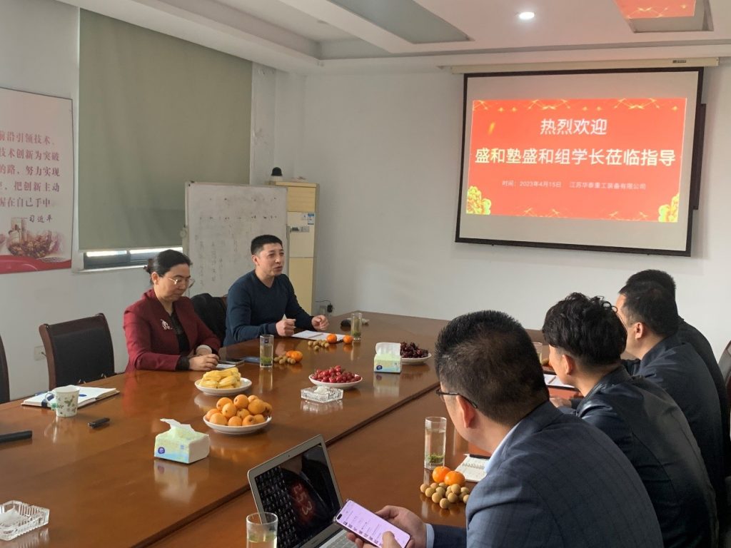 四月的華泰春意盎然,4月15日上午,在江蘇華泰重工裝備有限公司會議室,迎來了南京盛和塾的盛和組學(xué)長,舉行了以“走訪學(xué)長企業(yè)”的學(xué)習(xí)交流活動。參會人員有:盛和組副組長成君、沃爾格總經(jīng)理倪楷昕、揚(yáng)子江數(shù)字科技管猛、才德夫人文化傳媒創(chuàng)始人酈紅霞、新孚達(dá)(鎮(zhèn)江)高性能材料總經(jīng)理?xiàng)钶x及同事一行6人,由華泰重工總經(jīng)理張濤俊熱情接待陪同參觀調(diào)研。